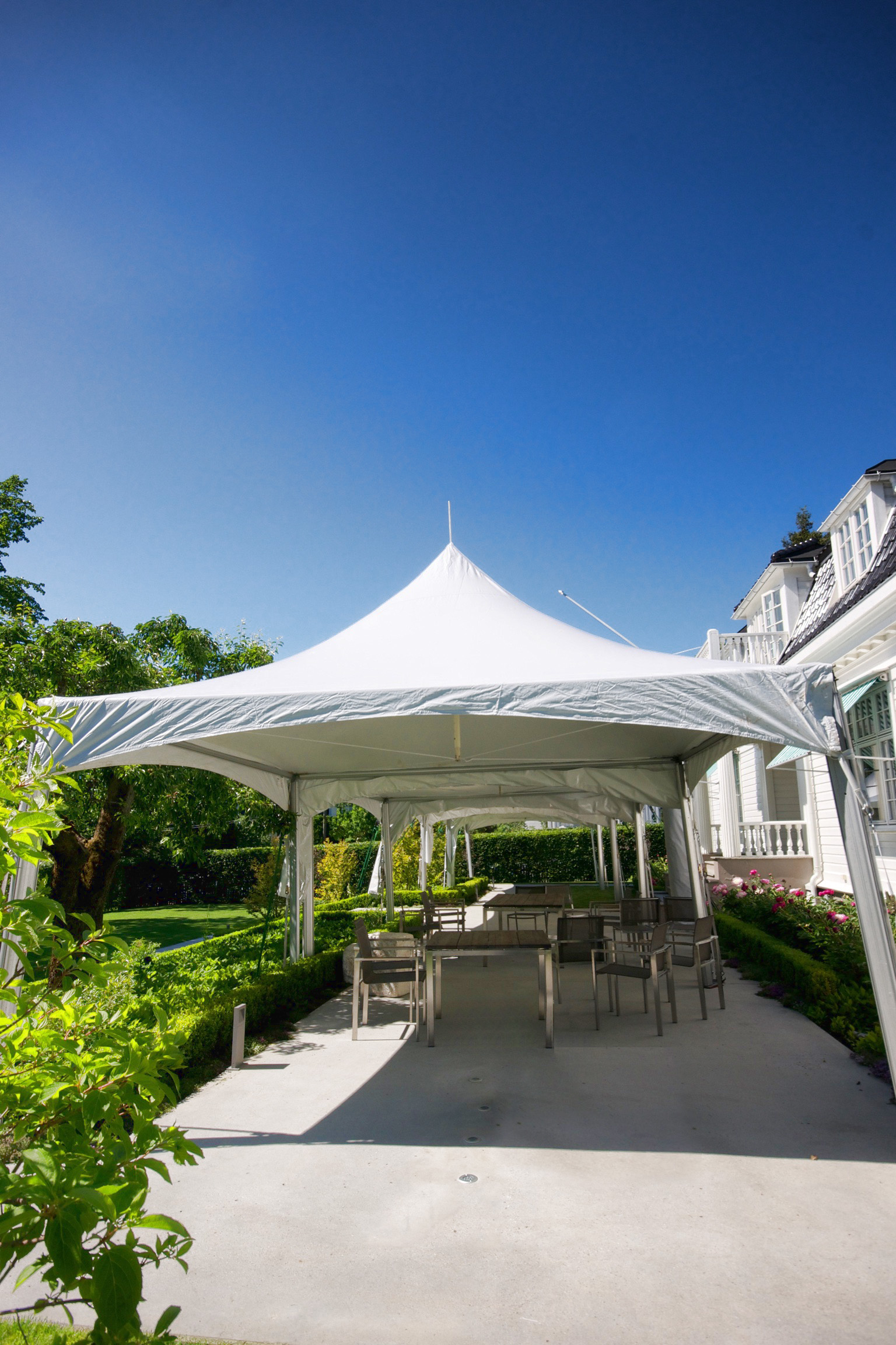 Topptelt har som navnet tilsier et spisst tak, i alle telt inngår vegger med eller uten vinduer etter ditt eget ønske.